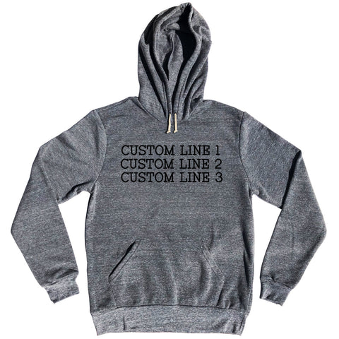 Product Story: Custom Typewriter Font Tri-Blend HoodieProduct Description: Custom Typewriter Font Tri-Blend Hoodie 6.5 oz. Tri-Blend Cozy Soft Material Pre-Shrunk Set-in sleeves Pouch front pocket Ribbed bottom band and sleeve cuffs