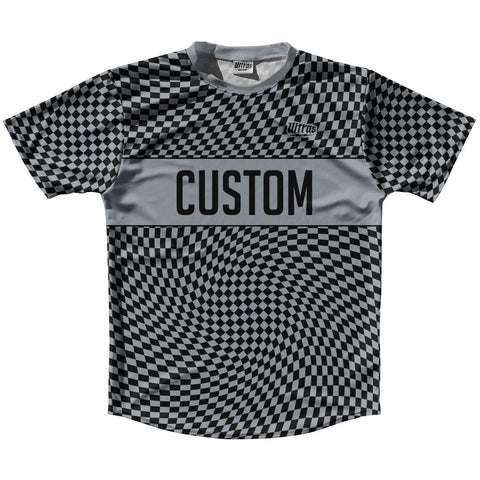 Product Story: Warped Checkerboard Custom Running Shirt Track Cross Made In USAProduct Description: Warped Checkerboard Custom Running Shirt Track Cross Made In USA Performance Running Top Team Discounts 100% Polyester Perfomance Polyester Made In USA