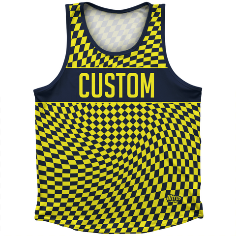 Product Story: Warped Checkerboard Custom Athletic Sport Tank Top Made In USAProduct Description: Warped Checkerboard Custom Athletic Sport Tank Top Made In USA 4 Way Stretch Premium Micro-Fiber Sport Material 100% Polyester Sublimated Print Smooth and Comfortable Moisture Wicking Team Discounts Made in USA