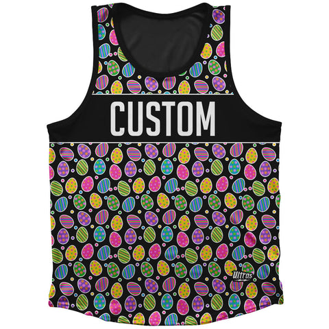 Product Story: Easter Egg Custom Athletic Sport Tank Top Made In USAProduct Description: Easter Egg Custom Athletic Sport Tank Top Made In USA 4 Way Stretch Premium Micro-Fiber Sport Material 100% Polyester Sublimated Print Smooth and Comfortable Moisture Wicking Customizable Team Discounts Made in USA