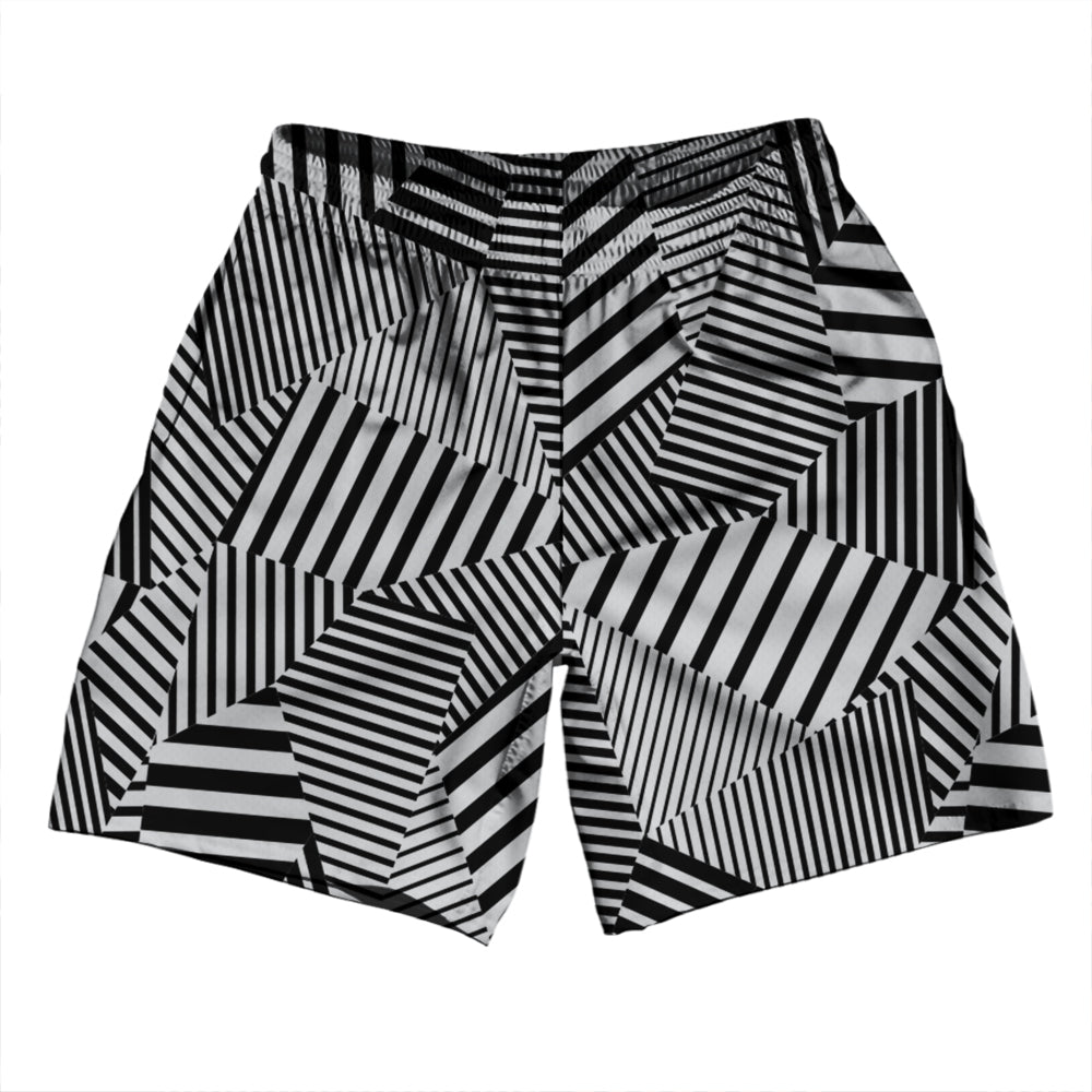 Multiple Lines Pattern Athletic Running Fitness Exercise Shorts 7" Inseam Shorts Made In USA