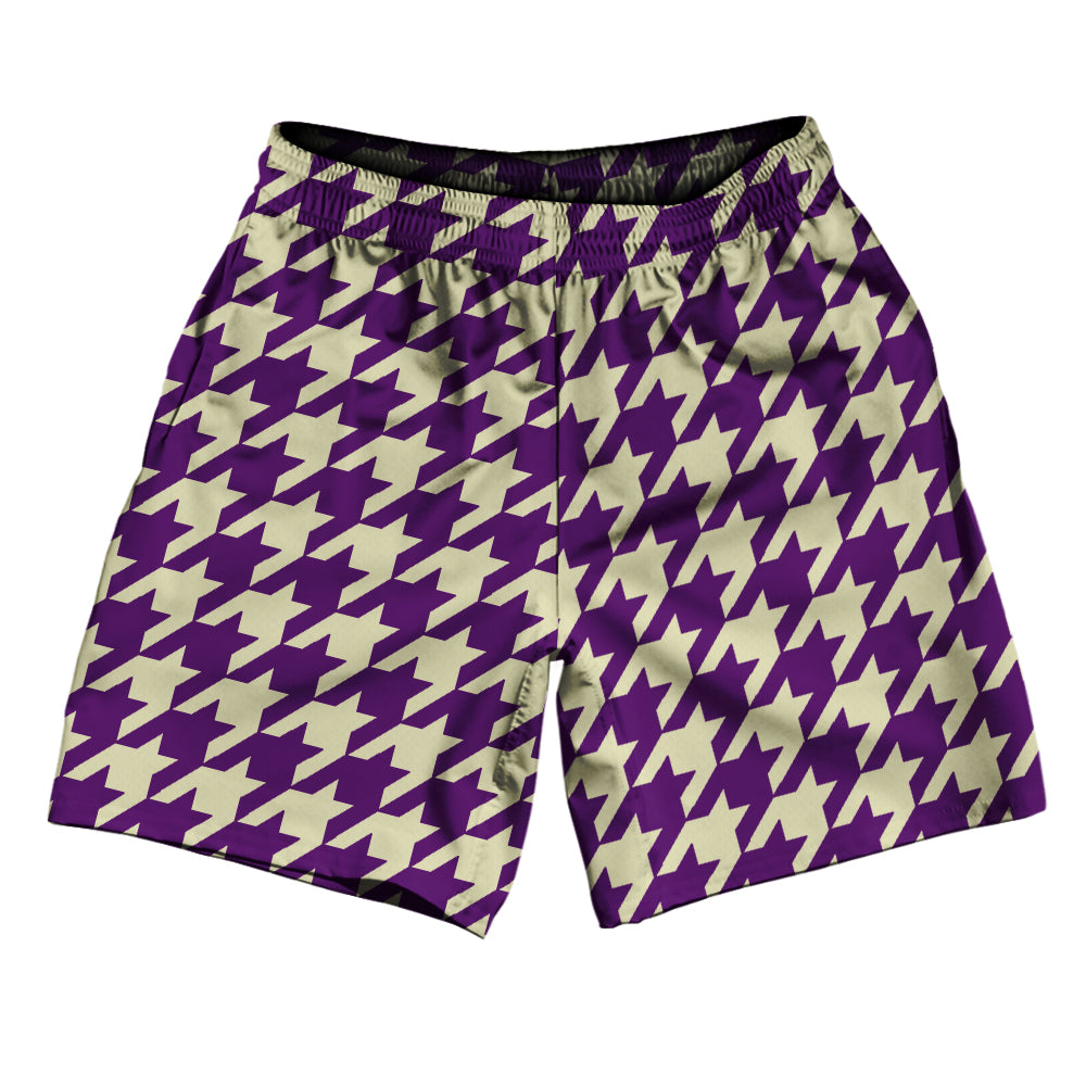 Purple Medium And Vegas Gold Houndstooth Athletic Running Fitness Exercise Shorts 7" Inseam Shorts Made In USA
