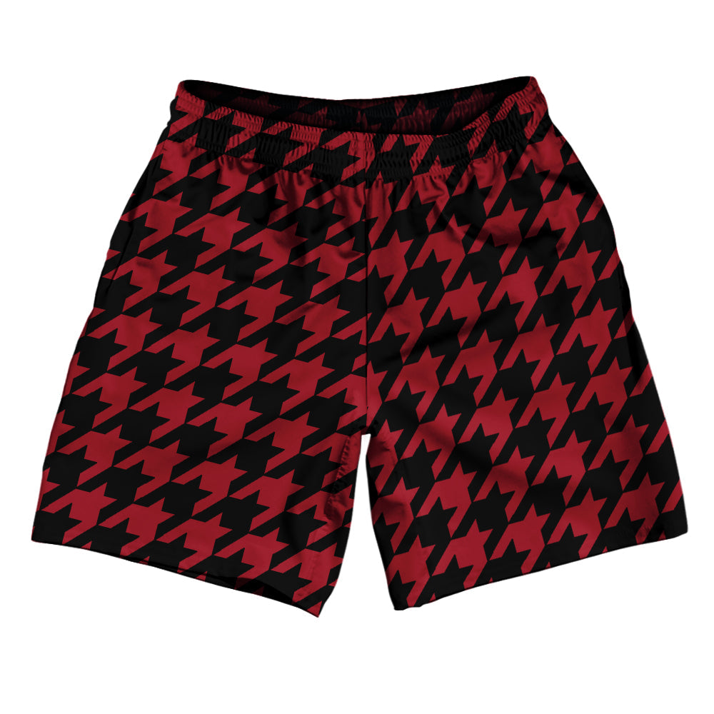 Red Cardinal And Black Houndstooth Athletic Running Fitness Exercise Shorts 7" Inseam Shorts Made In USA