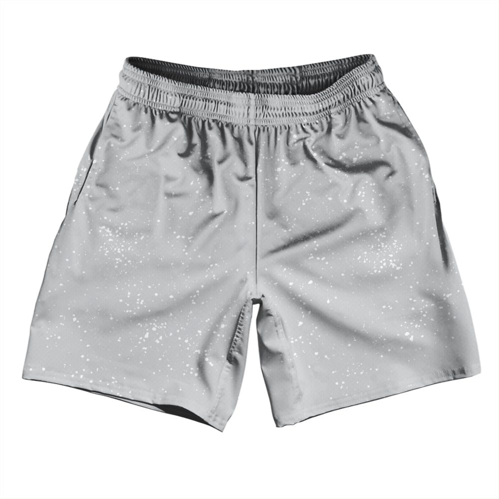 - Super Fly Pattern Grey Medium and White Athletic Running Fitness Exercise Shorts 7" Inseam Shorts Made In USA
