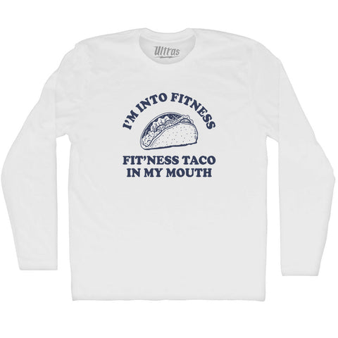 Product Story: I'M Into Fitness Fit'Ness Taco In My Mouth Adult Cotton Long Sleeve T-shirtProduct Description: I'M Into Fitness Fit'Ness Taco In My Mouth Adult Cotton Long Sleeve T-shirt Cotton Buttery Smooth Soft Material Medium Weight Tee Soft Hand Print