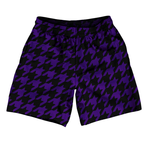 Product Story: Purple Lakers And Black Houndstooth Athletic Running Fitness Exercise Shorts 7" Inseam Shorts Made In USAProduct Description: Purple Lakers And Black Houndstooth Athletic Running Fitness Exercise Shorts 7" Inseam Shorts Made In USA Forever Color Sharpness Men's Gym Shorts 7 Inch Inseam Side Pockets Athletic Microfiber Great Sports Shorts Elastic Waist Draw String Durable Made In USA