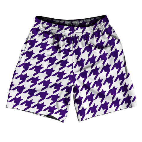 Product Story: Purple Medium And White Houndstooth Athletic Running Fitness Exercise Shorts 7" Inseam Shorts Made In USAProduct Description: Purple Medium And White Houndstooth Athletic Running Fitness Exercise Shorts 7" Inseam Shorts Made In USA Forever Color Sharpness Men's Gym Shorts 7 Inch Inseam Side Pockets Athletic Microfiber Great Sports Shorts Elastic Waist Draw String Durable Made In USA
