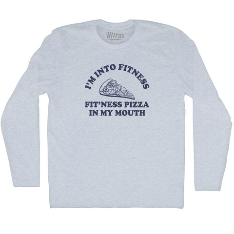 Product Story: I'M Into Fitness Fit'Ness Pizza In My Mouth Adult Tri-Blend Long Sleeve T-shirtProduct Description: I'M Into Fitness Fit'Ness Pizza In My Mouth Adult Tri-Blend Long Sleeve T-shirt Tri-Blend (Polyester, Rayon, Cotton) Buttery Smooth Soft Material Medium Weight Tee Soft Hand Print