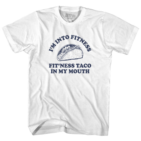 Product Story: I'M Into Fitness Fit'Ness Taco In My Mouth Adult Cotton T-shirtProduct Description: I'M Into Fitness Fit'Ness Taco In My Mouth Adult Cotton T-shirt Cotton (90% Cotton &10% Polyester) Buttery Smooth Soft Material Medium Weight Tee Soft Hand Print