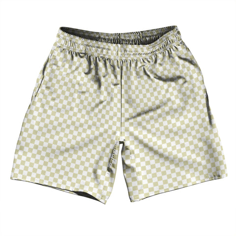 Product Story: Checkerboard Half Inch Vegas Gold and White Athletic Running Fitness Exercise Shorts 7" Inseam Shorts Made In USAProduct Description: Checkerboard Half Inch Vegas Gold and White Athletic Running Fitness Exercise Shorts 7" Inseam Shorts Made In USA Forever Color Sharpness Men's Gym Shorts 7 Inch Inseam Side Pockets Athletic Microfiber Great Sports Shorts Elastic Waist Draw String Durable...