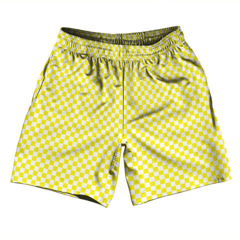 Product Story: Checkerboard Half Inch Yellow Bright and White Athletic Running Fitness Exercise Shorts 7" Inseam Shorts Made In USAProduct Description: Checkerboard Half Inch Yellow Bright and White Athletic Running Fitness Exercise Shorts 7" Inseam Shorts Made In USA Forever Color Sharpness Men's Gym Shorts 7 Inch Inseam Side Pockets Athletic Microfiber Great Sports Shorts Elastic Waist Draw String Durable...
