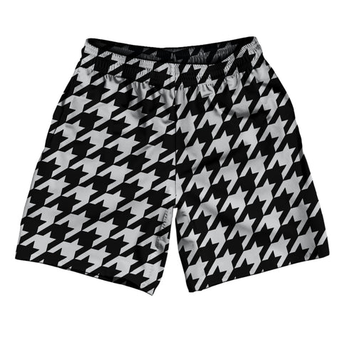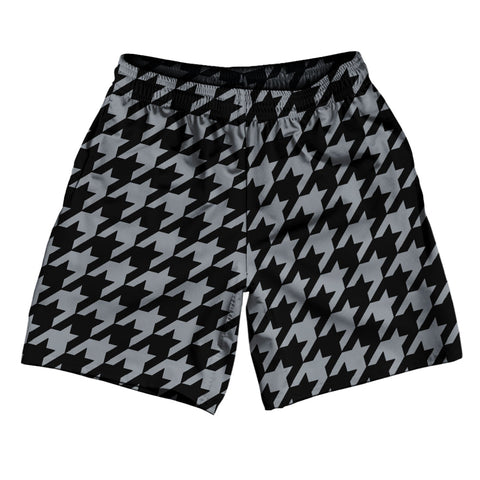 Product Story: Grey Medium And Black Houndstooth Athletic Running Fitness Exercise Shorts 7" Inseam Shorts Made In USAProduct Description: Grey Medium And Black Houndstooth Athletic Running Fitness Exercise Shorts 7" Inseam Shorts Made In USA Forever Color Sharpness Men's Gym Shorts 7 Inch Inseam Side Pockets Athletic Microfiber Great Sports Shorts Elastic Waist Draw String Durable Made In USA