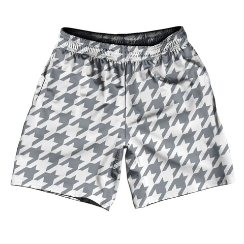 Product Story: Grey Medium And White Houndstooth Athletic Running Fitness Exercise Shorts 7" Inseam Shorts Made In USAProduct Description: Grey Medium And White Houndstooth Athletic Running Fitness Exercise Shorts 7" Inseam Shorts Made In USA Forever Color Sharpness Men's Gym Shorts 7 Inch Inseam Side Pockets Athletic Microfiber Great Sports Shorts Elastic Waist Draw String Durable Made In USA