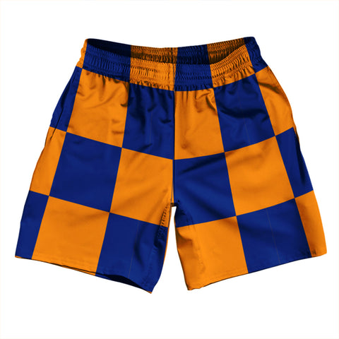 Product Story: Checkerboard 5 Inches Blue Royal and Tennessee Orange Athletic Running Fitness Exercise Shorts 7" Inseam Shorts Made In USAProduct Description: Checkerboard 5 Inches Blue Royal and Tennessee Orange Athletic Running Fitness Exercise Shorts 7" Inseam Shorts Made In USA Forever Color Sharpness Men's Gym Shorts 7 Inch Inseam Side Pockets Athletic Microfiber Great Sports Shorts Elastic Waist Draw...