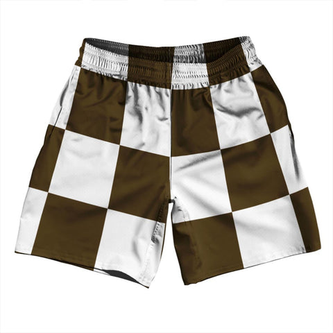 Product Story: Checkerboard 5 Inches Brown Dark and White Athletic Running Fitness Exercise Shorts 7" Inseam Shorts Made In USAProduct Description: Checkerboard 5 Inches Brown Dark and White Athletic Running Fitness Exercise Shorts 7" Inseam Shorts Made In USA Forever Color Sharpness Men's Gym Shorts 7 Inch Inseam Side Pockets Athletic Microfiber Great Sports Shorts Elastic Waist Draw String Durable...