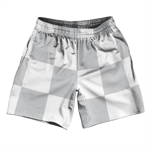 Product Story: Checkerboard 5 Inches Grey Medium and White Athletic Running Fitness Exercise Shorts 7" Inseam Shorts Made In USAProduct Description: Checkerboard 5 Inches Grey Medium and White Athletic Running Fitness Exercise Shorts 7" Inseam Shorts Made In USA Forever Color Sharpness Men's Gym Shorts 7 Inch Inseam Side Pockets Athletic Microfiber Great Sports Shorts Elastic Waist Draw String Durable...