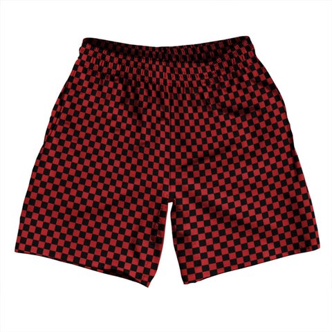 Product Story: Checkerboard 5 Inches Red Dark and White Athletic Running Fitness Exercise Shorts 7" Inseam Shorts Made In USAProduct Description: Checkerboard 5 Inches Red Dark and White Athletic Running Fitness Exercise Shorts 7" Inseam Shorts Made In USA Forever Color Sharpness Men's Gym Shorts 7 Inch Inseam Side Pockets Athletic Microfiber Great Sports Shorts Elastic Waist Draw String Durable...