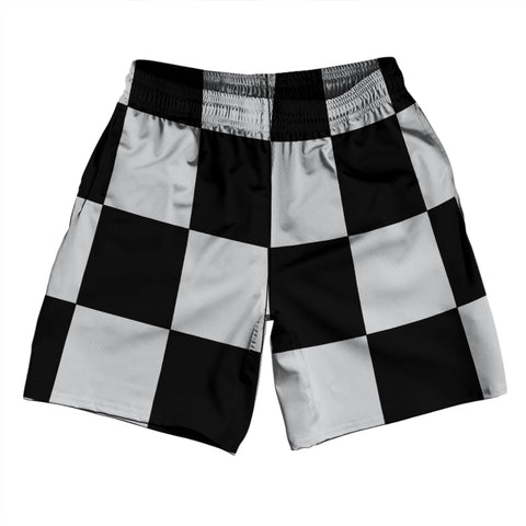 Product Story: Checkerboard 5 Inches Black and White Athletic Running Fitness Exercise Shorts 7" Inseam Shorts Made In USAProduct Description: Checkerboard 5 Inches Black and White Athletic Running Fitness Exercise Shorts 7" Inseam Shorts Made In USA Forever Color Sharpness Men's Gym Shorts 7 Inch Inseam Side Pockets Athletic Microfiber Great Sports Shorts Elastic Waist Draw String Durable Made In...