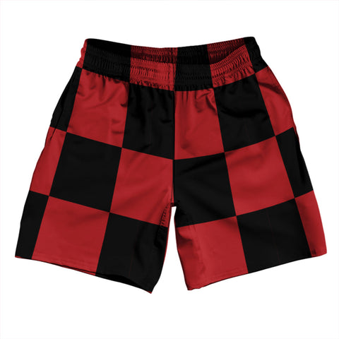 Product Story: Checkerboard 2.5 Inches Red Dark and White Athletic Running Fitness Exercise Shorts 7" Inseam Shorts Made In USAProduct Description: Checkerboard 2.5 Inches Red Dark and White Athletic Running Fitness Exercise Shorts 7" Inseam Shorts Made In USA Forever Color Sharpness Men's Gym Shorts 7 Inch Inseam Side Pockets Athletic Microfiber Great Sports Shorts Elastic Waist Draw String Durable...