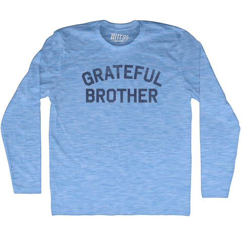 Product Story: Grateful Brother Adult Tri-Blend Long Sleeve T-shirtProduct Description: Grateful Brother Adult Tri-Blend Long Sleeve T-shirt Tri-Blend (Polyester, Rayon, Cotton) Buttery Smooth Soft Material Medium Weight Tee Soft Hand Print