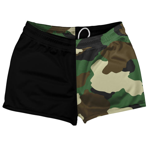 Product Story: Army Camo and Black Quad Shorty Short Gym Shorts 2.5" Inseam Made In USAProduct Description: Army Camo and Black Quad Shorty Short Gym Shorts 2.5" Inseam Made In USA Men's Short Shorts 2.5 Inseam No Pockets Athletic Microfiber Great For Inspiring Baby Making, Rugby, Running, Hoops, Racket Sports, Gym Class and Basket Weaving. Draw String Durable Made In...