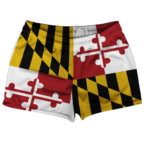 Product Story: Maryland Flag Shorty Short Gym Shorts 2.5" Inseam Made In USAProduct Description: Maryland Flag Shorty Short Gym Shorts 2.5" Inseam Made In USA Men's Short Shorts 2.5 Inseam No Pockets Athletic Microfiber Great For Inspiring Baby Making, Rugby, Running, Hoops, Racket Sports, Gym Class and Basket Weaving. Draw String Durable Made In USA