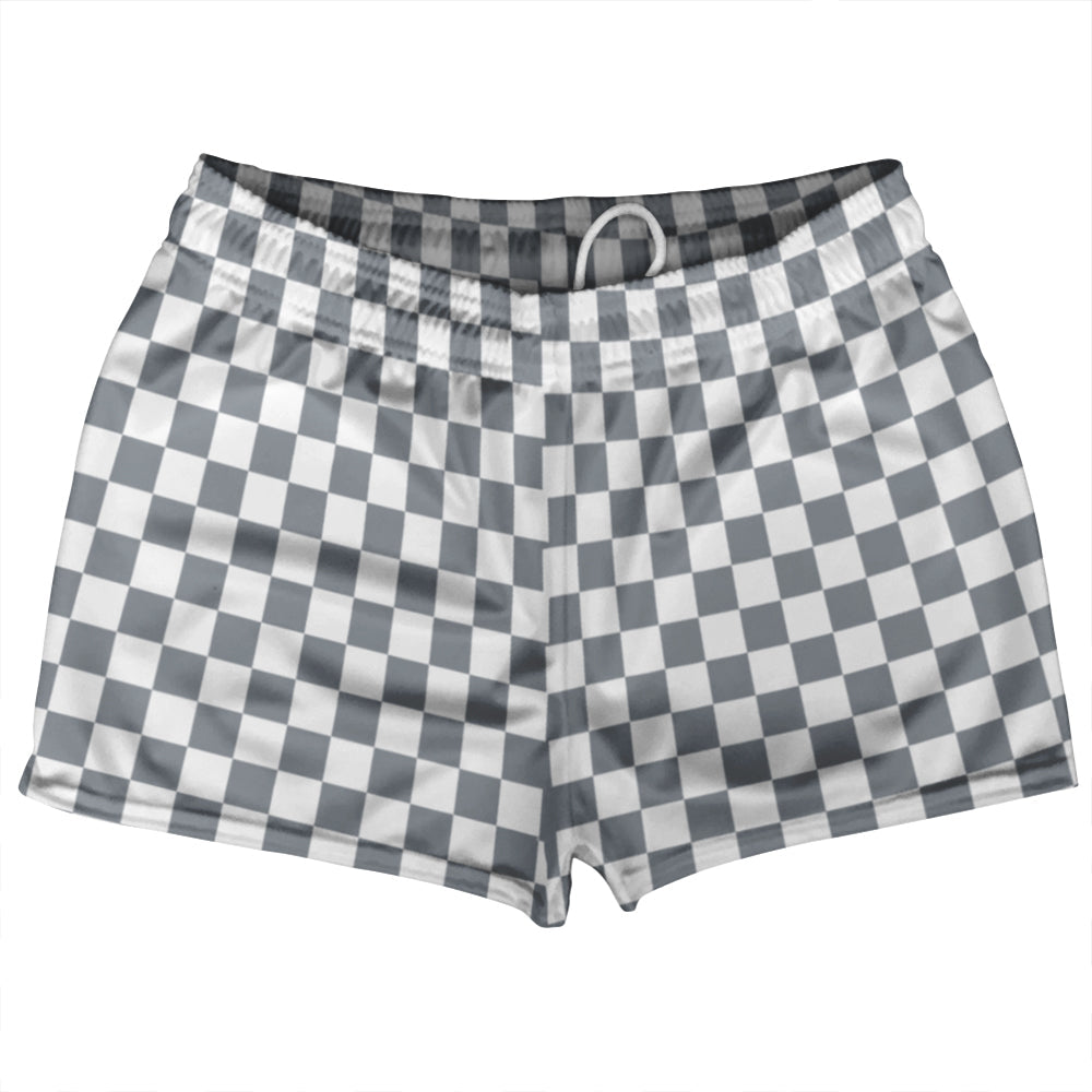 - Checkerboard 1 Inch Grey Dark and White Shorty Short Gym Shorts 2.5" Inseam Made In USA