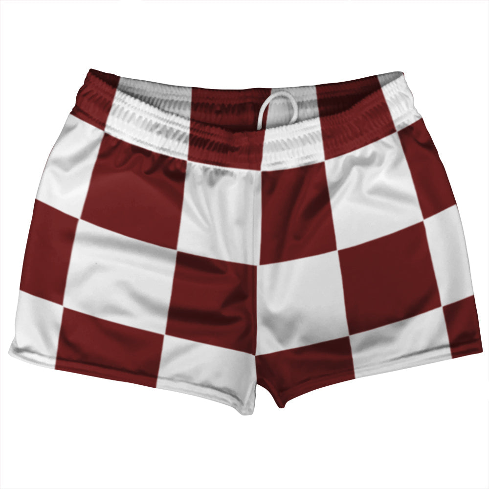 - Checkerboard 5 Inches Red Maroon and White Shorty Short Gym Shorts 2.5" Inseam Made In USA