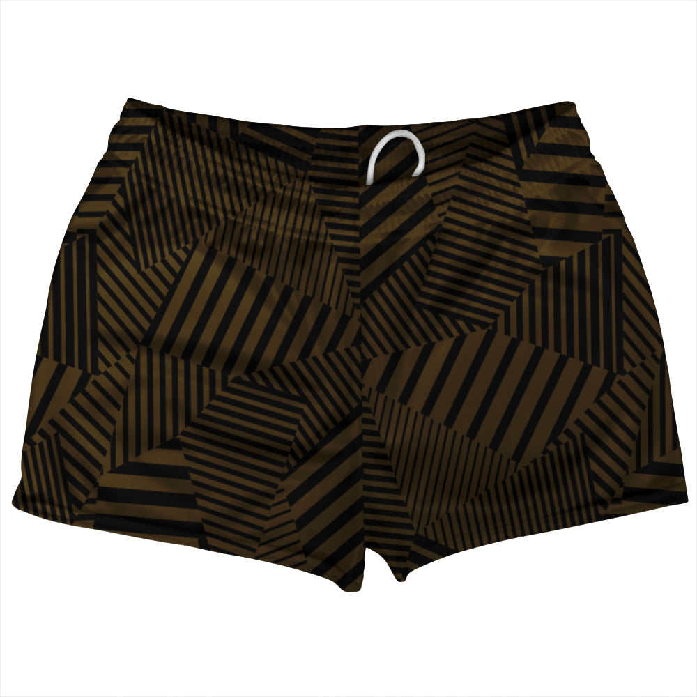 Multiple Lines Pattern Shorty Short Gym Shorts 2.5" Inseam Made In USA