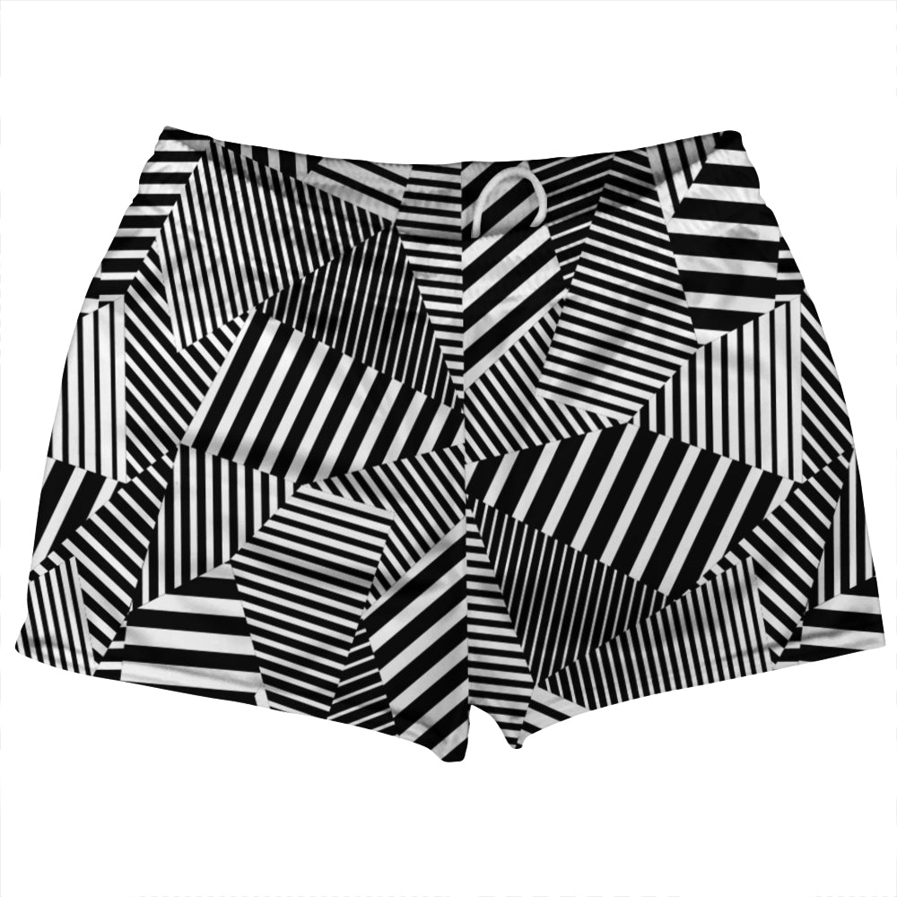 Multiple Lines Pattern Shorty Short Gym Shorts 2.5" Inseam Made In USA