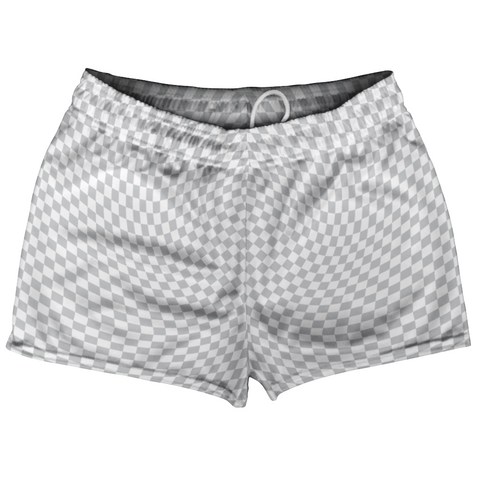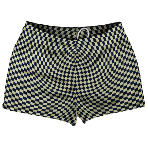 Product Story: Warped Checkerboard Shorty Short Gym Shorts 2.5" Inseam Made In USAProduct Description: Warped Checkerboard Shorty Short Gym Shorts 2.5" Inseam Made In USA Men's Short Shorts 2.5 Inseam No Pockets Athletic Microfiber Great For Inspiring Baby Making, Rugby, Running, Hoops, Racket Sports, Gym Class and Basket Weaving. Draw String Durable Made In USA