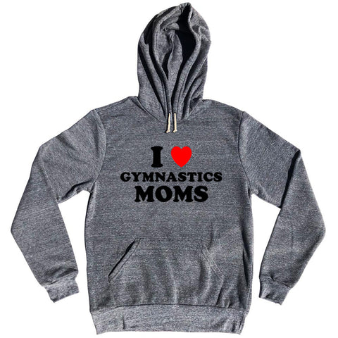 Product Story: I Love Gymnastics Moms Tri-Blend HoodieProduct Description: I Love Gymnastics Moms Tri-Blend Hoodie 6.5 oz. Tri-Blend Cozy Soft Material Pre-Shrunk Set-in sleeves Pouch front pocket Ribbed bottom band and sleeve cuffs