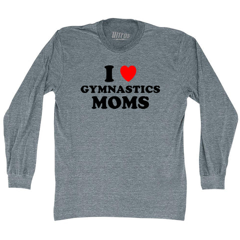 Product Story: I Love Gymnastics Moms Adult Tri-Blend Long Sleeve T-shirtProduct Description: I Love Gymnastics Moms Adult Tri-Blend Long Sleeve T-shirt Tri-Blend (Polyester, Rayon, Cotton) Buttery Smooth Soft Material Medium Weight Tee Soft Hand Print