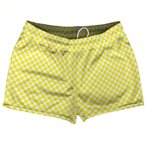 Product Story: Checkerboard Half Inch Yellow Bright and White Shorty Short Gym Shorts 2.5" Inseam Made In USAProduct Description: Checkerboard Half Inch Yellow Bright and White Shorty Short Gym Shorts 2.5" Inseam Made In USA Men's Short Shorts 2.5 Inseam No Pockets Athletic Microfiber Great For Inspiring Baby Making, Rugby, Running, Hoops, Racket Sports, Gym Class and Basket Weaving. Draw...
