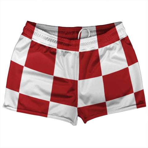 Product Story: Checkerboard 5 Inches Red Dark and White Shorty Short Gym Shorts 2.5" Inseam Made In USAProduct Description: Checkerboard 5 Inches Red Dark and White Shorty Short Gym Shorts 2.5" Inseam Made In USA Men's Short Shorts 2.5 Inseam No Pockets Athletic Microfiber Great For Inspiring Baby Making, Rugby, Running, Hoops, Racket Sports, Gym Class and Basket Weaving. Draw...
