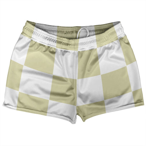 Product Story: Checkerboard 5 Inches Vegas Gold and White Shorty Short Gym Shorts 2.5" Inseam Made In USAProduct Description: Checkerboard 5 Inches Vegas Gold and White Shorty Short Gym Shorts 2.5" Inseam Made In USA Men's Short Shorts 2.5 Inseam No Pockets Athletic Microfiber Great For Inspiring Baby Making, Rugby, Running, Hoops, Racket Sports, Gym Class and Basket Weaving. Draw...
