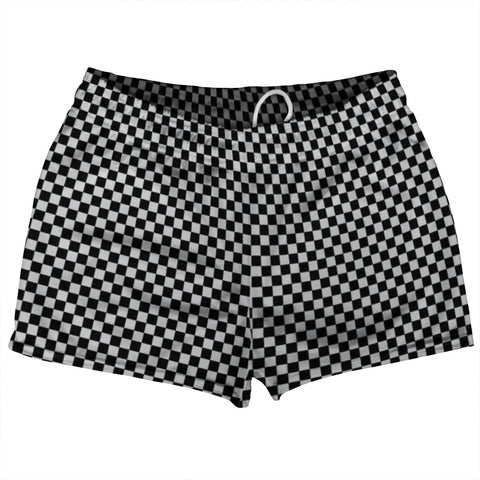 Product Story: Checkerboard 5 Inches Grey Dark and White Shorty Short Gym Shorts 2.5" Inseam Made In USAProduct Description: Checkerboard 5 Inches Grey Dark and White Shorty Short Gym Shorts 2.5" Inseam Made In USA Men's Short Shorts 2.5 Inseam No Pockets Athletic Microfiber Great For Inspiring Baby Making, Rugby, Running, Hoops, Racket Sports, Gym Class and Basket Weaving. Draw...