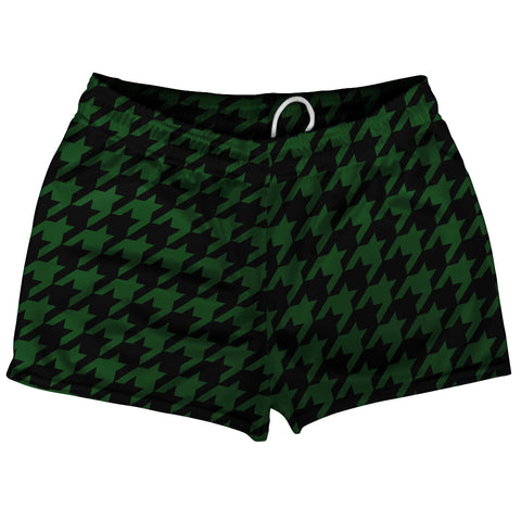Product Story: Green Hunter And Black Houndstooth Shorty Short Gym Shorts 2.5" Inseam Made In USAProduct Description: Green Hunter And Black Houndstooth Shorty Short Gym Shorts 2.5" Inseam Made In USA Men's Short Shorts 2.5 Inseam No Pockets Athletic Microfiber Great For Inspiring Baby Making, Rugby, Running, Hoops, Racket Sports, Gym Class and Basket Weaving. Draw String Durable Made In...