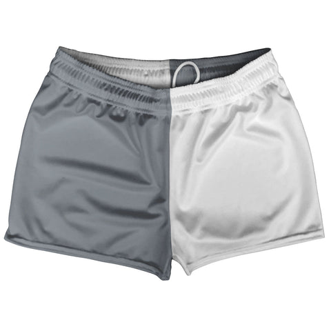 Product Story: Grey Dark And White Quad Color Shorty Short Gym Shorts 2.5" Inseam Made In USAProduct Description: Grey Dark And White Quad Color Shorty Short Gym Shorts 2.5" Inseam Made In USA Men's Short Shorts 2.5 Inseam No Pockets Athletic Microfiber Great For Inspiring Baby Making, Rugby, Running, Hoops, Racket Sports, Gym Class and Basket Weaving. Draw String Durable...