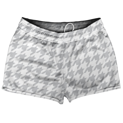 Product Story: Grey Medium And White Houndstooth Shorty Short Gym Shorts 2.5" Inseam Made In USAProduct Description: Grey Medium And White Houndstooth Shorty Short Gym Shorts 2.5" Inseam Made In USA Men's Short Shorts 2.5 Inseam No Pockets Athletic Microfiber Great For Inspiring Baby Making, Rugby, Running, Hoops, Racket Sports, Gym Class and Basket Weaving. Draw String Durable Made In...