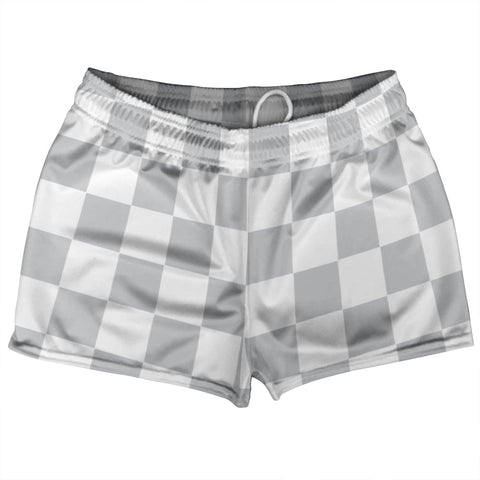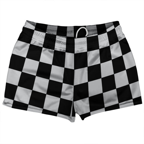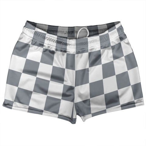 Product Story: Checkerboard 2.5 Inches Grey Dark and White Shorty Short Gym Shorts 2.5" Inseam Made In USAProduct Description: Checkerboard 2.5 Inches Grey Dark and White Shorty Short Gym Shorts 2.5" Inseam Made In USA Men's Short Shorts 2.5 Inseam No Pockets Athletic Microfiber Great For Inspiring Baby Making, Rugby, Running, Hoops, Racket Sports, Gym Class and Basket Weaving. Draw...