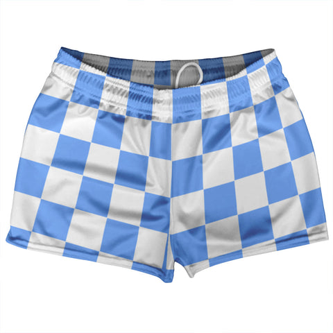 Product Story: Checkerboard 2.5 Inches Blue Carolina and White Shorty Short Gym Shorts 2.5" Inseam Made In USAProduct Description: Checkerboard 2.5 Inches Blue Carolina and White Shorty Short Gym Shorts 2.5" Inseam Made In USA Men's Short Shorts 2.5 Inseam No Pockets Athletic Microfiber Great For Inspiring Baby Making, Rugby, Running, Hoops, Racket Sports, Gym Class and Basket Weaving. Draw...