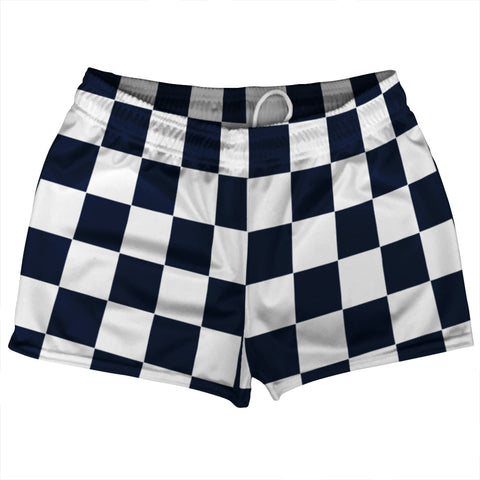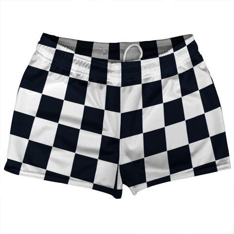 Product Story: Checkerboard 2.5 Inches Blue Navy Almost Black and White Shorty Short Gym Shorts 2.5" Inseam Made In USAProduct Description: Checkerboard 2.5 Inches Blue Navy Almost Black and White Shorty Short Gym Shorts 2.5" Inseam Made In USA Men's Short Shorts 2.5 Inseam No Pockets Athletic Microfiber Great For Inspiring Baby Making, Rugby, Running, Hoops, Racket Sports, Gym Class...