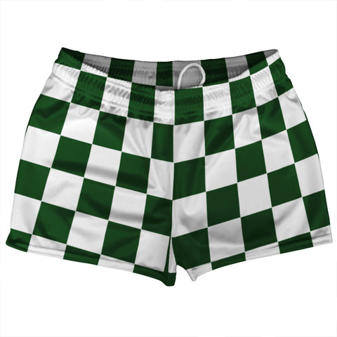 Product Story: Checkerboard 2.5 Inches Green Forest and White Shorty Short Gym Shorts 2.5" Inseam Made In USAProduct Description: Checkerboard 2.5 Inches Green Forest and White Shorty Short Gym Shorts 2.5" Inseam Made In USA Men's Short Shorts 2.5 Inseam No Pockets Athletic Microfiber Great For Inspiring Baby Making, Rugby, Running, Hoops, Racket Sports, Gym Class and Basket Weaving. Draw...