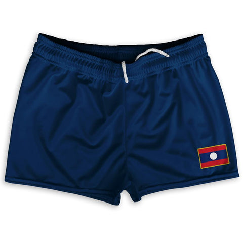 Product Story: Laos Country Heritage Flag Shorty Short Gym Shorts 2.5" Inseam Made In USAProduct Description: Laos Country Heritage Flag Shorty Short Gym Shorts 2.5" Inseam Made In USA Mens Short Shorts 2.5 Inseam No Pockets Athletic Microfiber Great For Inspiring Baby Making, Rugby, Running, Hoops, Racket Sports, Gym Class and Basket Weaving. Draw String Durable Made in USA