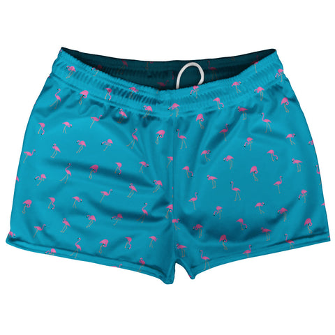 Product Story: Flamingo Aqua Shorts Shorty Short Gym Shorts 2.5" Inseam Made In USAProduct Description: Flamingo Aqua Shorts Shorty Short Gym Shorts 2.5" Inseam Made In USA Men's Short Shorts 2.5 Inseam No Pockets Athletic Microfiber Great For Inspiring Baby Making, Rugby, Running, Hoops, Racket Sports, Gym Class and Basket Weaving. Draw String Durable Made In USA