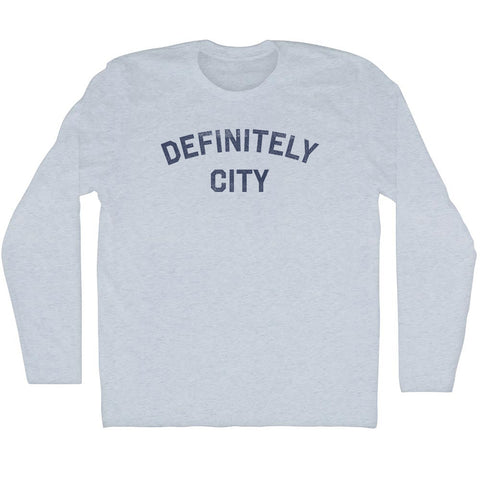 Product Story: Definitely City Adult Tri-Blend Long Sleeve T-shirtProduct Description: Definitely City Adult Tri-Blend Long Sleeve T-shirt Tri-Blend (Polyester, Rayon, Cotton) Buttery Smooth Soft Material Medium Weight Tee Soft Hand Print