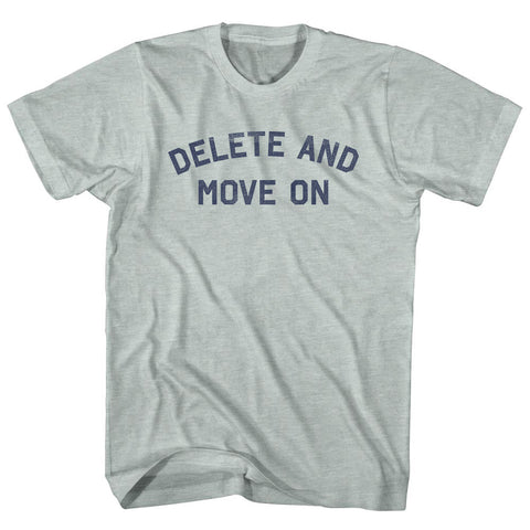 Product Story: Delete And Move On Adult Tri-Blend T-shirtProduct Description: Delete And Move On Adult Tri-Blend T-shirt Tri-Blend (Polyester, Rayon, Cotton) Buttery Smooth Soft Material Medium Weight Tee Soft Hand Print