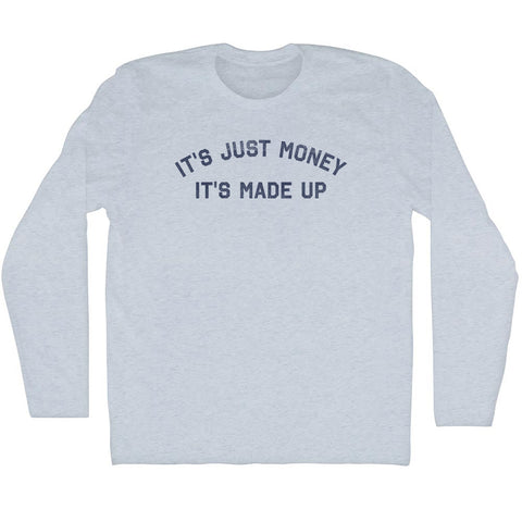 Product Story: It'S Just Money It'S Made Up Adult Tri-Blend Long Sleeve T-shirtProduct Description: It'S Just Money It'S Made Up Adult Tri-Blend Long Sleeve T-shirt Tri-Blend (Polyester, Rayon, Cotton) Buttery Smooth Soft Material Medium Weight Tee Soft Hand Print