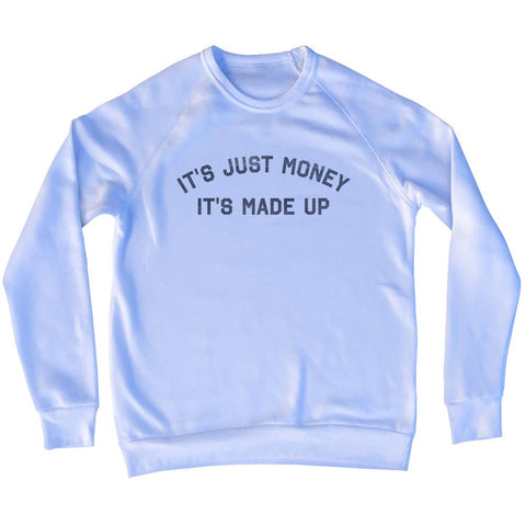 Product Story: It'S Just Money It'S Made Up Adult Tri-Blend SweatshirtProduct Description: It'S Just Money It'S Made Up Adult Tri-Blend Sweatshirt Tri-Blend (Polyester, Rayon, Cotton) Buttery Smooth Soft Material Medium Weight Tee Soft Hand Print